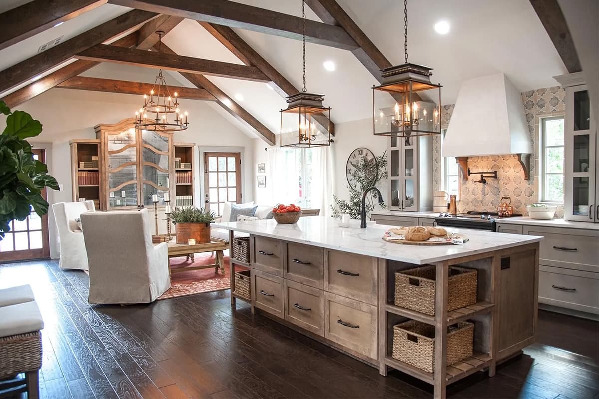 Якщо Ви облаштовуєте дизайн кухні-вітальні в сучасному стилі, Farmhouse створить плавний перехід між зонами, зберігаючи приємну атмосферу.