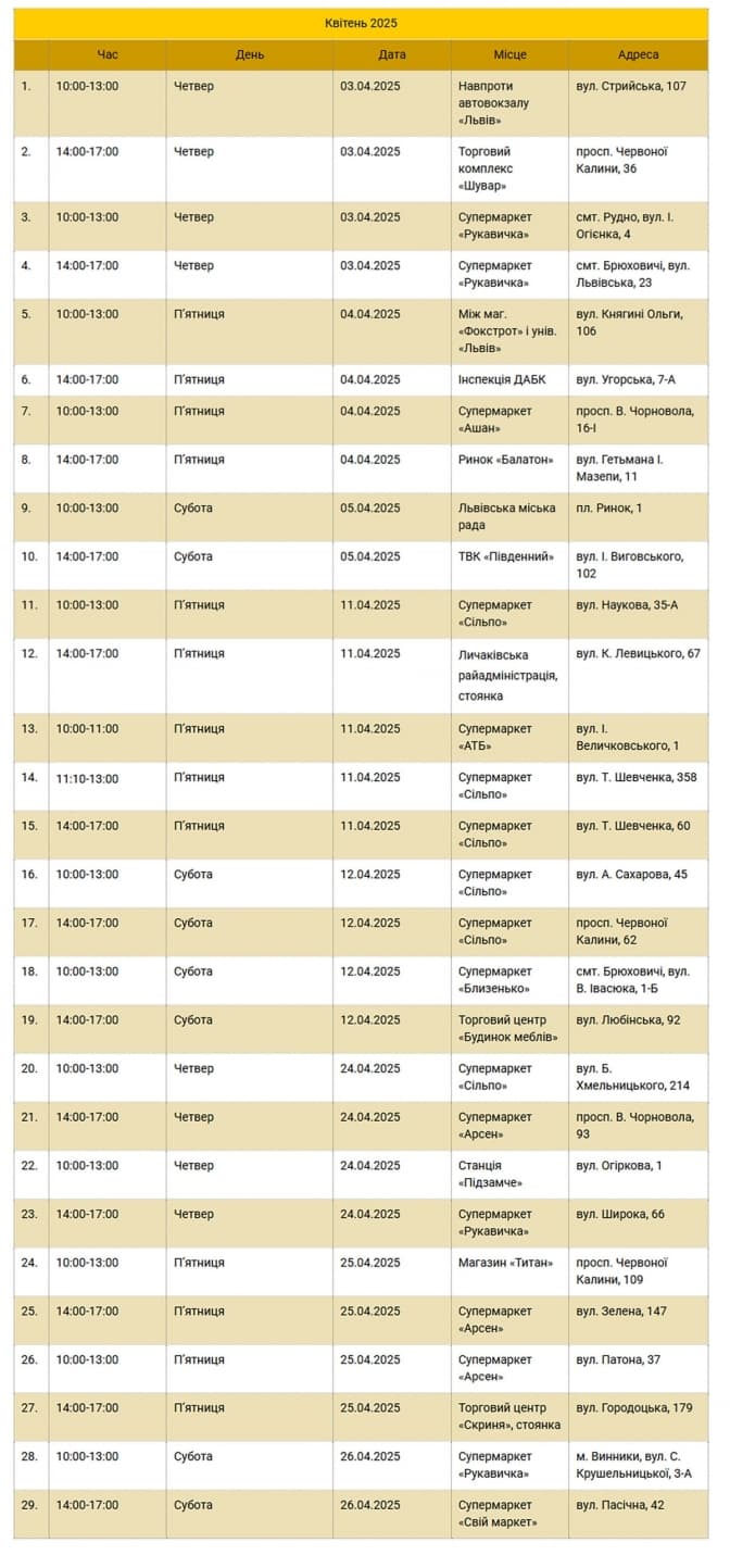 У квітні мобільні пункти збору продовжать приймати відпрацьовані лампи, ртутні термометри та батарейки на території Львівської громади, надаючи можливість людям правильно їх утилізувати. Екобус курсуватиме громадою з 3 по 26 квітня. Про це повідомили у ДП «Боднарівка».