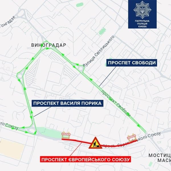 З 5 квітня 2025 року, через будівництво Сирецько-Печерської лінії метрополітену рух проспектом Європейського Союзу буде перекрито. Про це повідомляє пресслужба Патрульної поліції Києва.