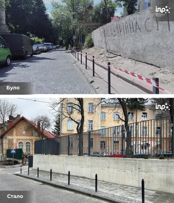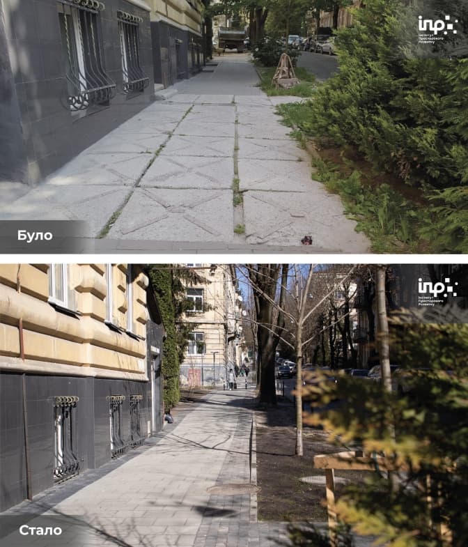 - Розширили вузьку ділянку тротуару між будинками № 10 та № 8, щоб забезпечити комфортний рух для всіх пішоходів, особливо маломобільних.