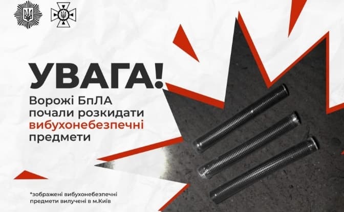 Читайте також: Окупанти почали розкидати з дронів вибухонебезпечні предмети. Час вибуху – невідомий. Такі предмети вилучені у Києві.