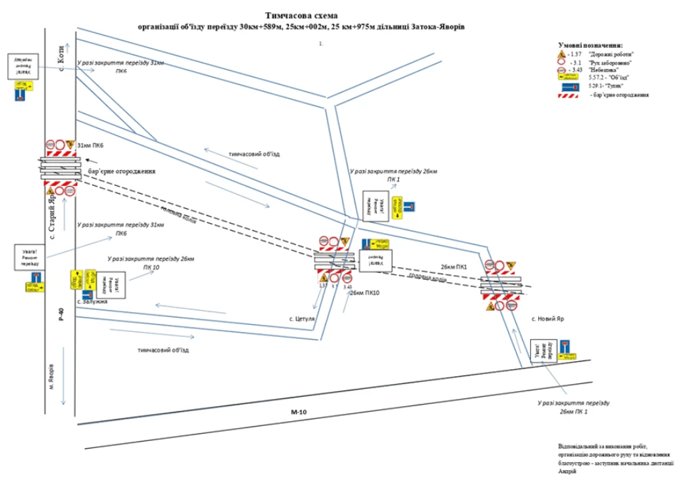 «Об’їзд автотранспорту буде здійснюватись відповідно до тимчасової схеми закриття переїзду», – повідомив директор департаменту дорожнього господарства Львівської ОДА Орест Шуліковський.