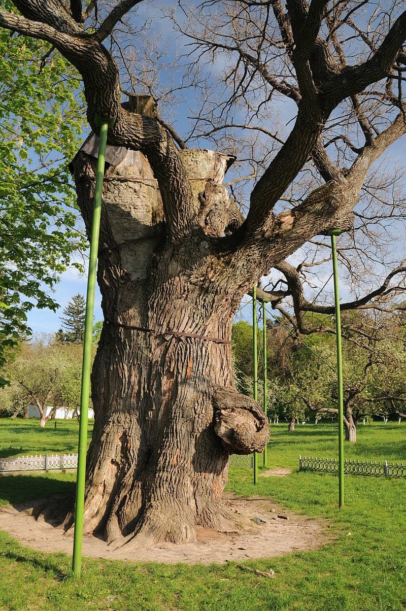 Дуб Шевченка-1. Обхват стовбура 8,40 м. Висота 20 м. Вік 1000 років.