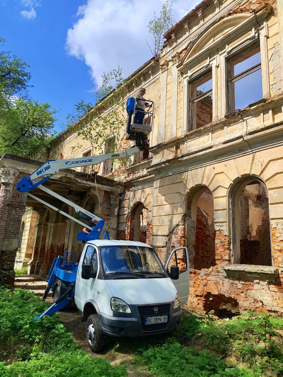 «Стосовно палацу, то вже цього тижня стартували протиаварійні роботи. Спочатку працювали фахівці, які знімали та вимірювали всі параметри, бо потрібно детально обстежити стан будівлі. Потім складаються акти огляду, визначається рівень складності необхідних робіт. Наступним кроком буде розробка робочих креслень і проєкту. Це перший етап, який триватиме до кінця травня», – зазначив Хомяк.
