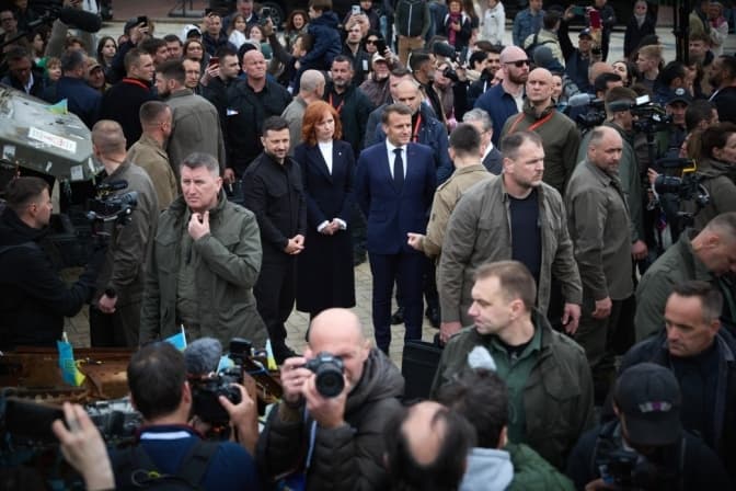 Президент України Володимир Зеленський, президент Франції Емманюель Макрон і прем’єр-міністр Великої Британії Кір Стармер після засідання коаліції охочих в суботу, 10 травня, пройшлися центром Києва. Про це повідомили в Офісі президента.