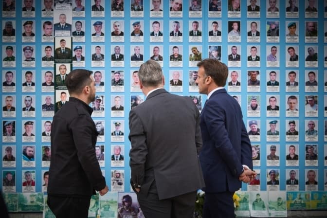 Лідери побували біля Стіни памʼяті на Михайлівській площі, поклали квіти та вшанували памʼять полеглих українських воїнів.