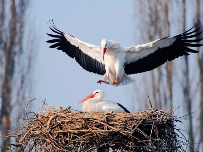 Місцеві жителі виготовили металевий каркас, який дозволив підняти гніздо вище і надійно його закріпити. Усі дії проводилися дуже обережно — аби не налякати птахів і не змусити їх покинути своє житло.