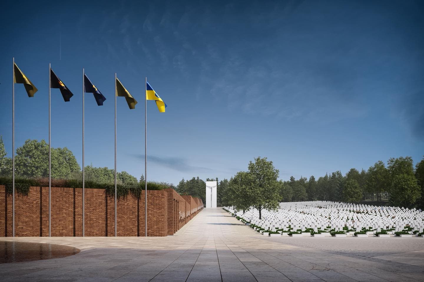 Меморіал складатиметься з церемоніальної зони, простору поховань, Стіни памʼяті з іменами та фото загиблих. Для воїнів, яких не вдалося поховати, створять спеціальну секцію.