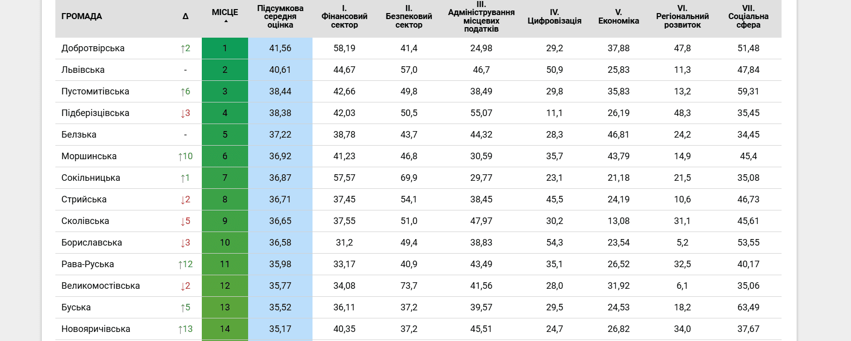 Нагадаємо, що на Львівщині відновили щомісячну комплексну рейтингову оцінку територіальних громад. Цей інструмент дає змогу всебічно аналізувати діяльність громад в умовах війни – від фінансової спроможності до підтримки військових та надання соціальних послуг.