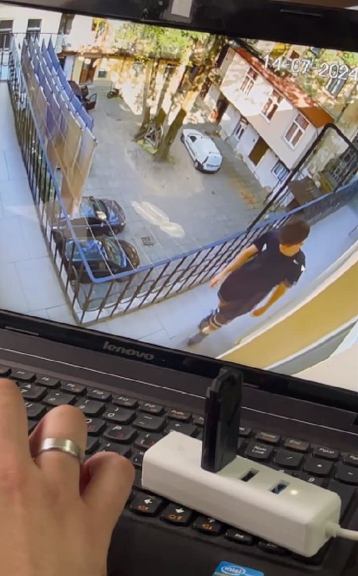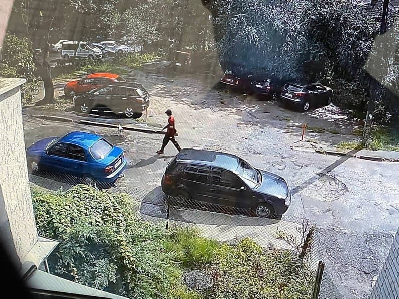«Особа фіксується на записах з камер спостереження за адресою Костюшка, 2, коли о 17:23 рухається по внутрішньому балкону. Також проглядається білий малюнок на рюкзаку і його шлейках. Потім — в коридор і направо йде в приміщення квартири», – сказала прокурорка Олена Данилів.