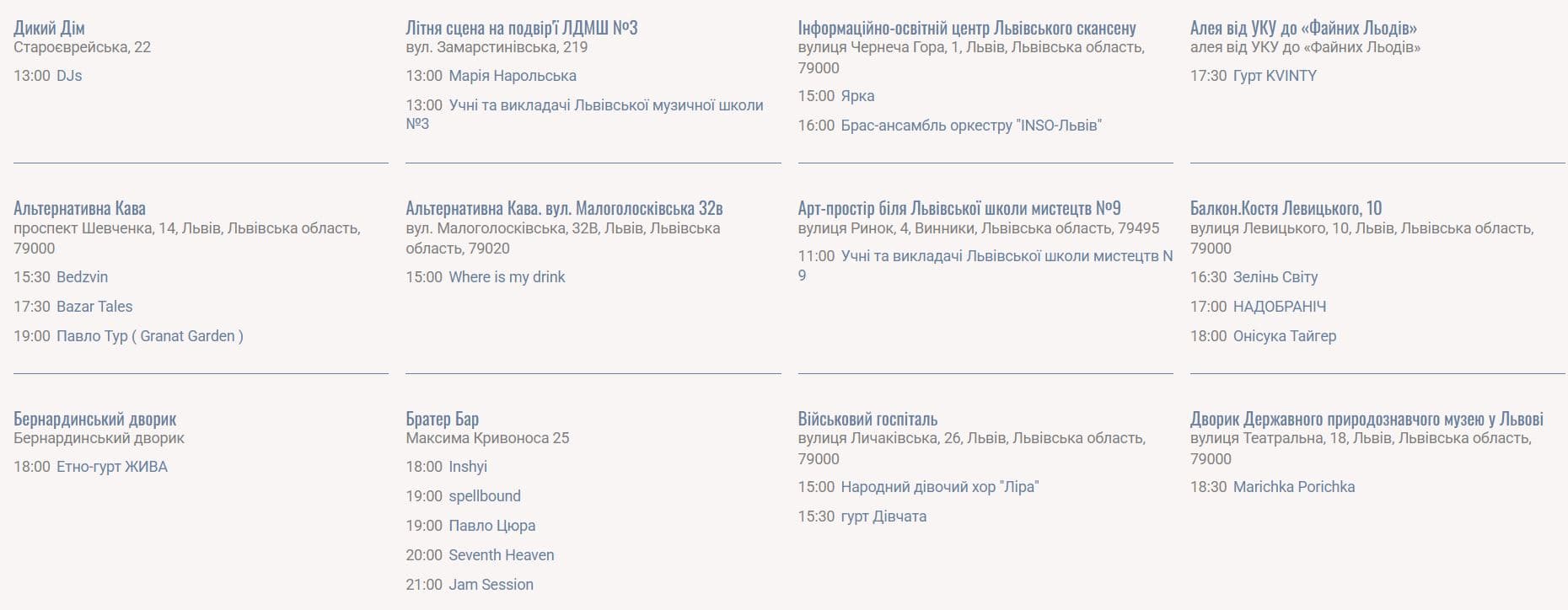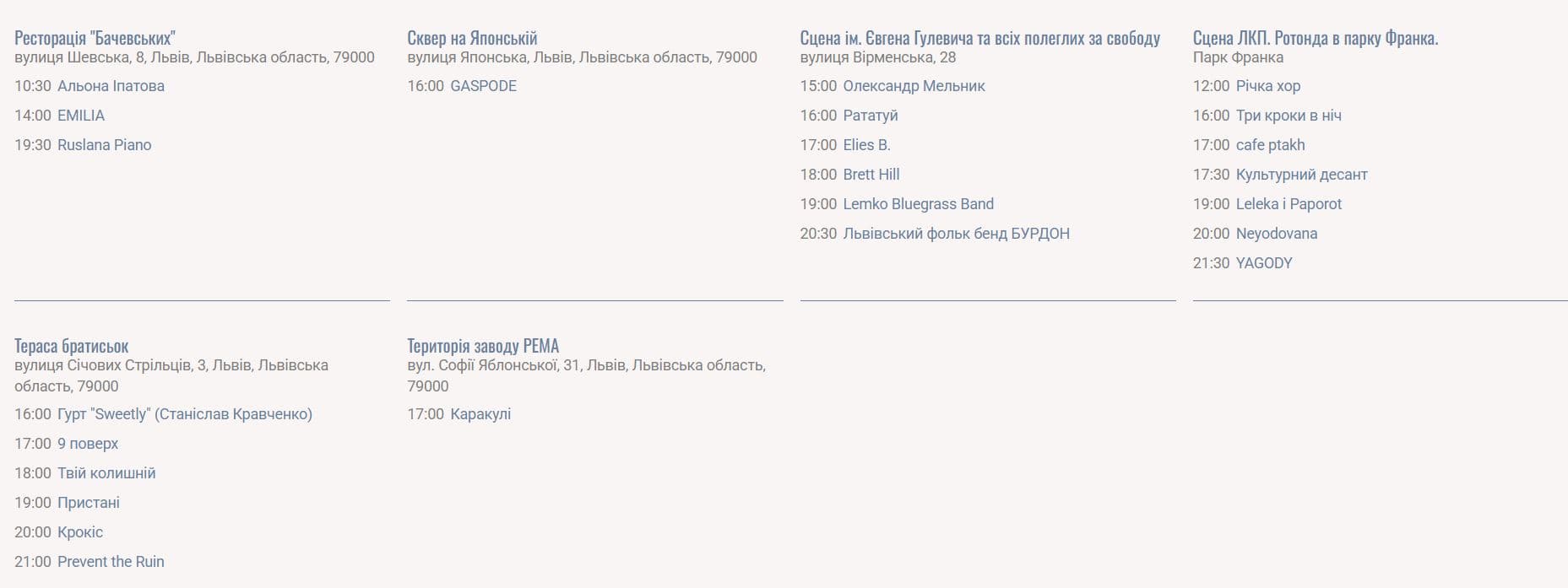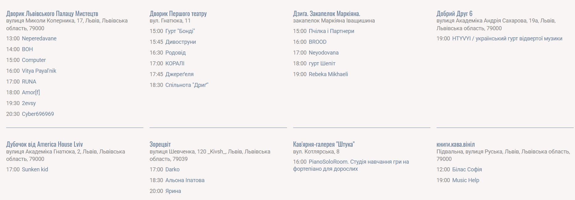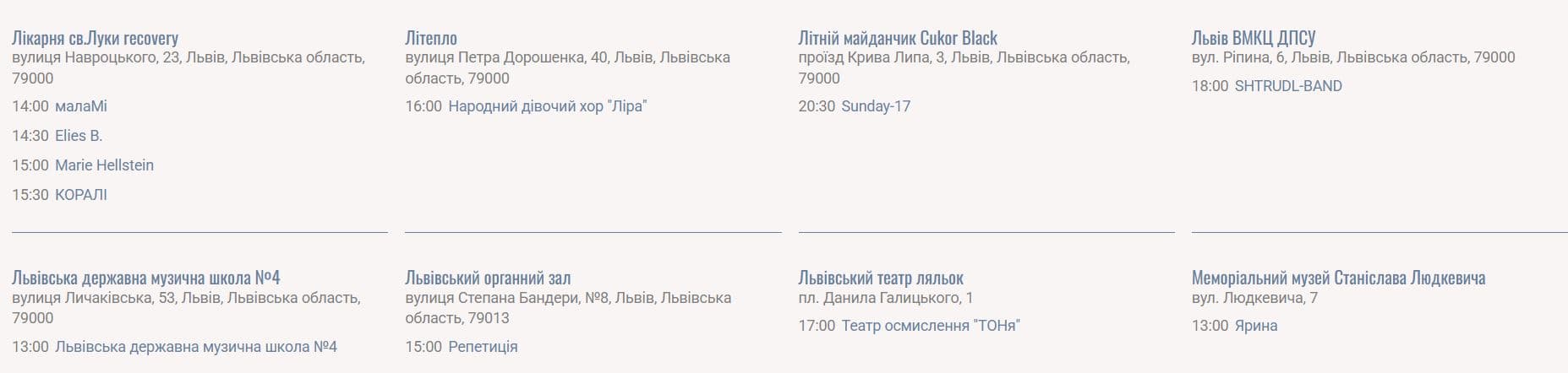 Програма Свята Музики також доступна за посиланням: https://fetedelamusique.lviv.ua/programm/