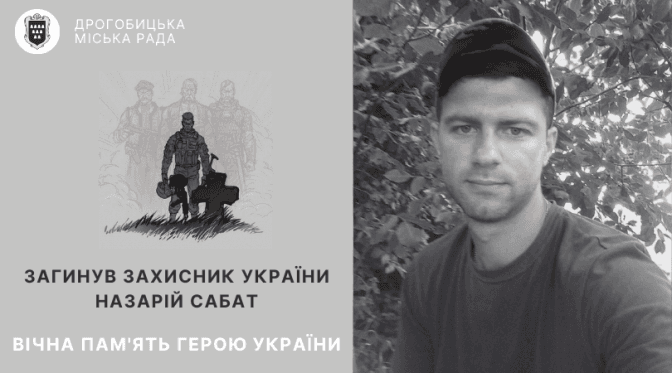 Під час захисту України від ворога загинув дрогобичанин Назарій Сабат, який в перші місяці повномасштабного вторгнення ворога став на захист країни. Про це повідомила пресслужба Дрогобицької міської ради.