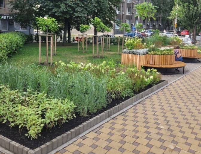 На бульварі Миколи Міхновського, 30/1, де раніше були МАФи, комунальники створили місце для відпочинку. Простір обладнали вуличними меблями й озеленили.