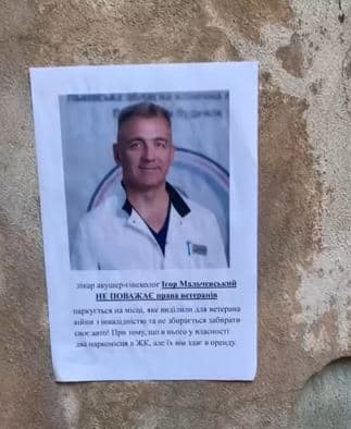До слова, у соцмережах повідомляють, що на поведінку лікаря відреагувала львівська молодь — його фото почали з’являтися на вулицях поблизу обласної лікарні. На плакатах зазначають, що Мальчевський займає місце для ветеранів і відмовляється його звільняти, попри численні зауваження.