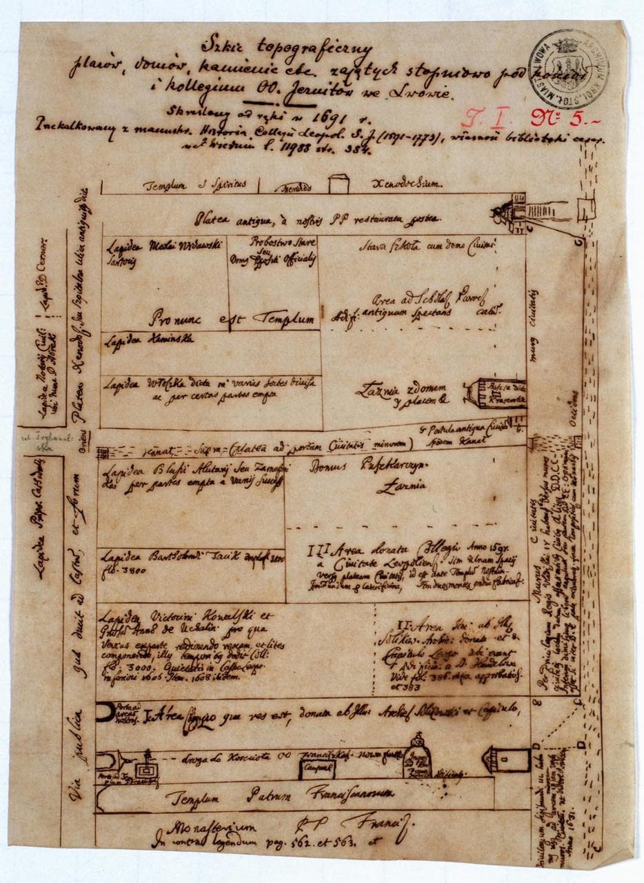 (План забудов на місці комплексу храму та колегії, укладений 1691 р.)