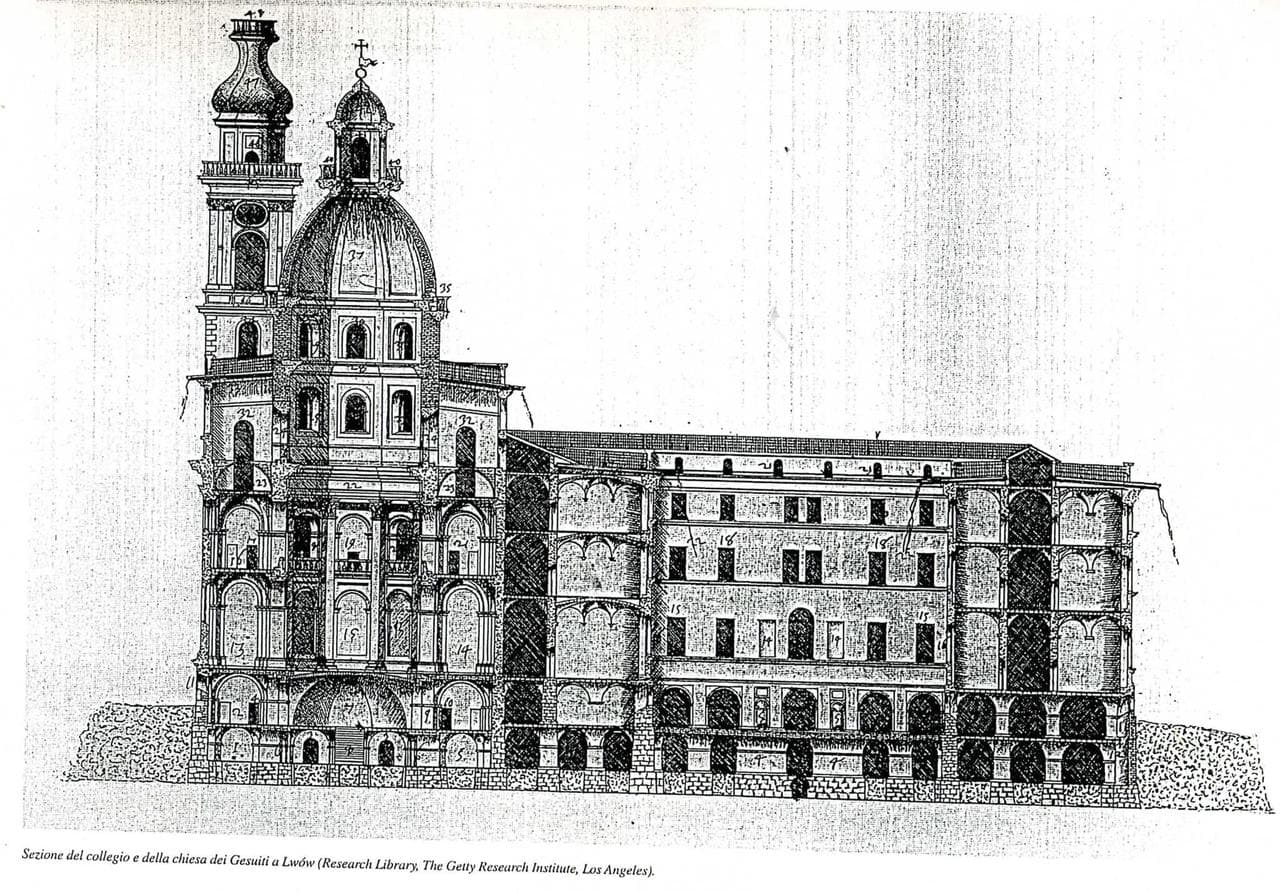 «Будували не на пустому місці. Архівний план 1691 року показує, що на території, де зараз розташовані Гарнізонний храм і школа №62, стояло кілька будвель: кафедральна школа, будинок настоятеля катедри та приватна кам’яниця. Сам храм і колегія є частиною єдиного архітектурного комплексу, задумано як храм і освітній заклад ордену єзуїтів», — пояснює Олег Друздєв.