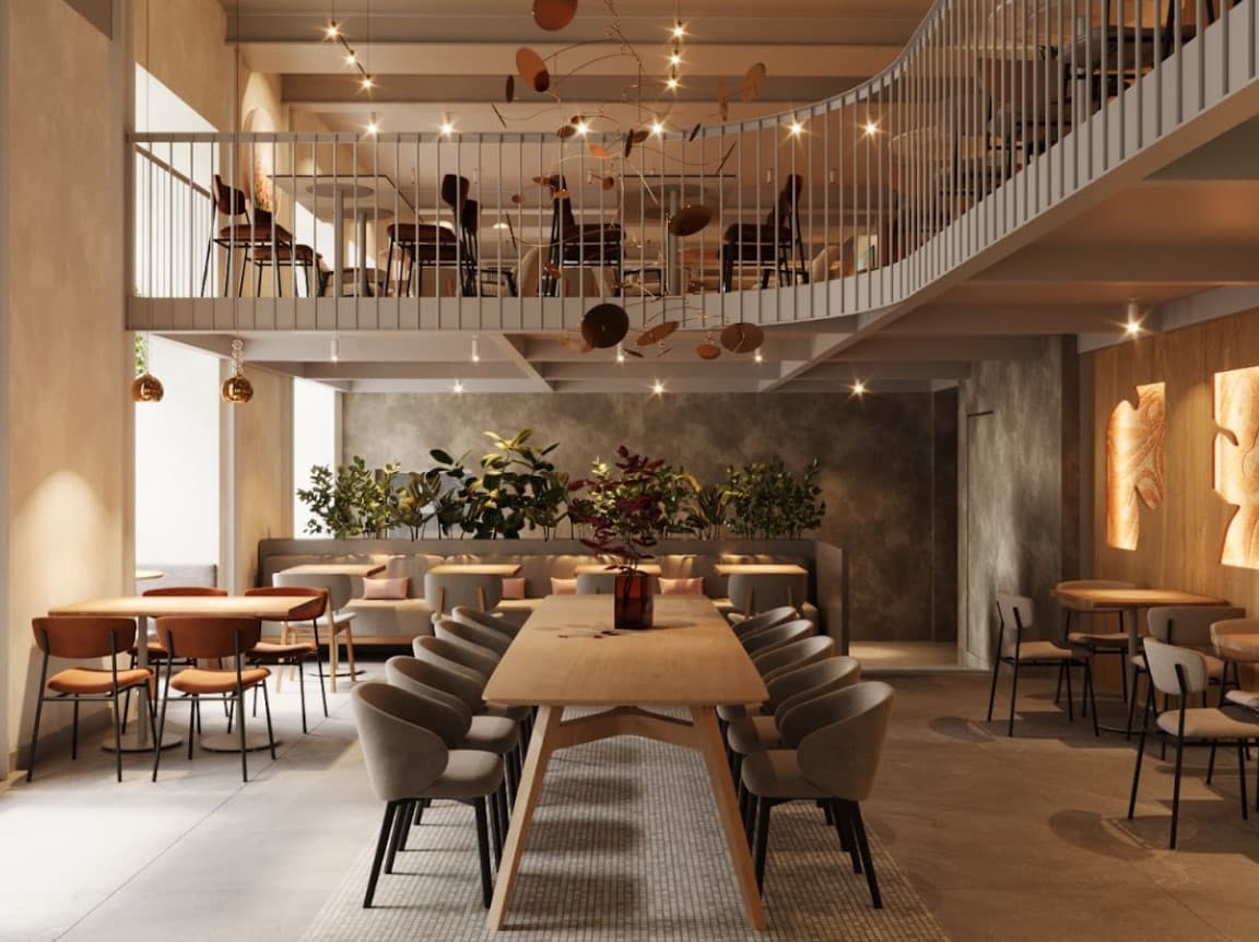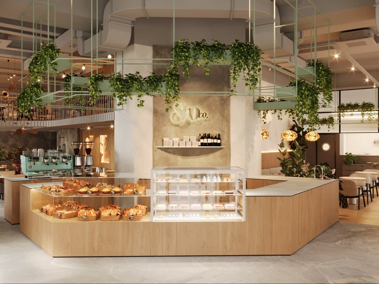 Нова локація SHOco. займає перший та другий поверхи, із панорамними вікнами та мальовничим видом на вулиці Гнатюка та Січових Стрільців. Приміщення пройшло повну трансформацію: від перепланування – до оновленого інтер'єру, що водночас зберігає затишок і впізнаваний стиль попередніх закладів SHOco. На першому поверсі розміщено дві зони на 70 посадкових місць: простора основна зала та комфортний загальний стіл для 10-х осіб.