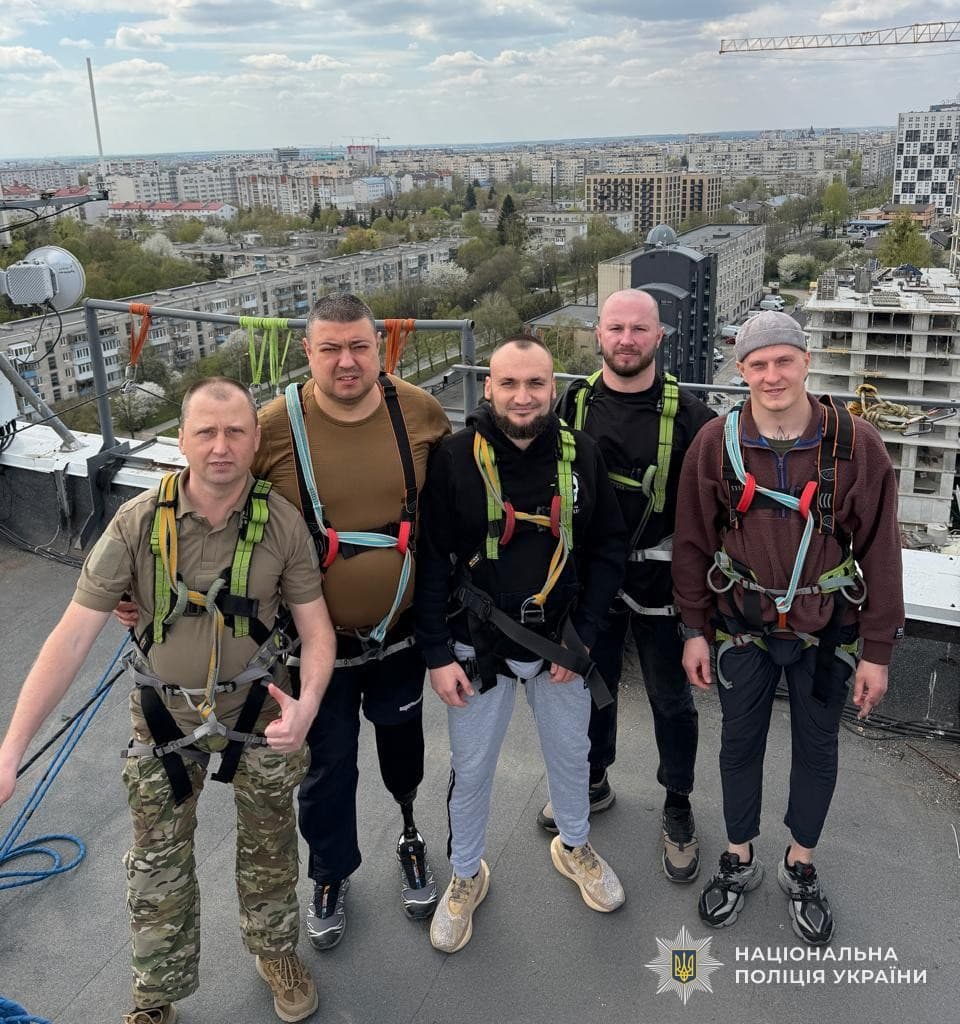 У Львові для правоохоронців, які проходять реабілітацію після поранень, організували незвичний формат відновлення — розважально-екстремальний захід у форматі роуп-джампінгу. Про це повідомили у поліції Львівської області.