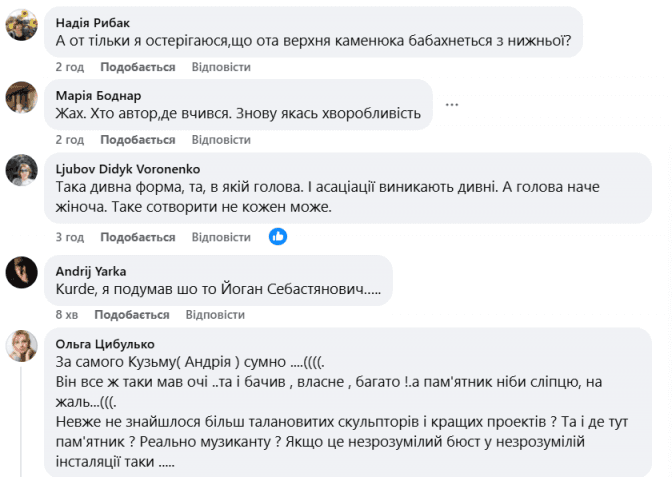 Користувачі під дописом також зазначали, що образ у камені мало нагадує музиканта, а сама ідея виглядає «жахливо» та «викликає дивні асоціації».