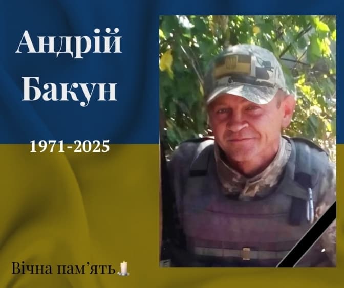 Помер 53-річний захисник зі Львівщини Бакун Андрій Зіновійович. Про це повідомила пресслужба Бродівської міської ради.