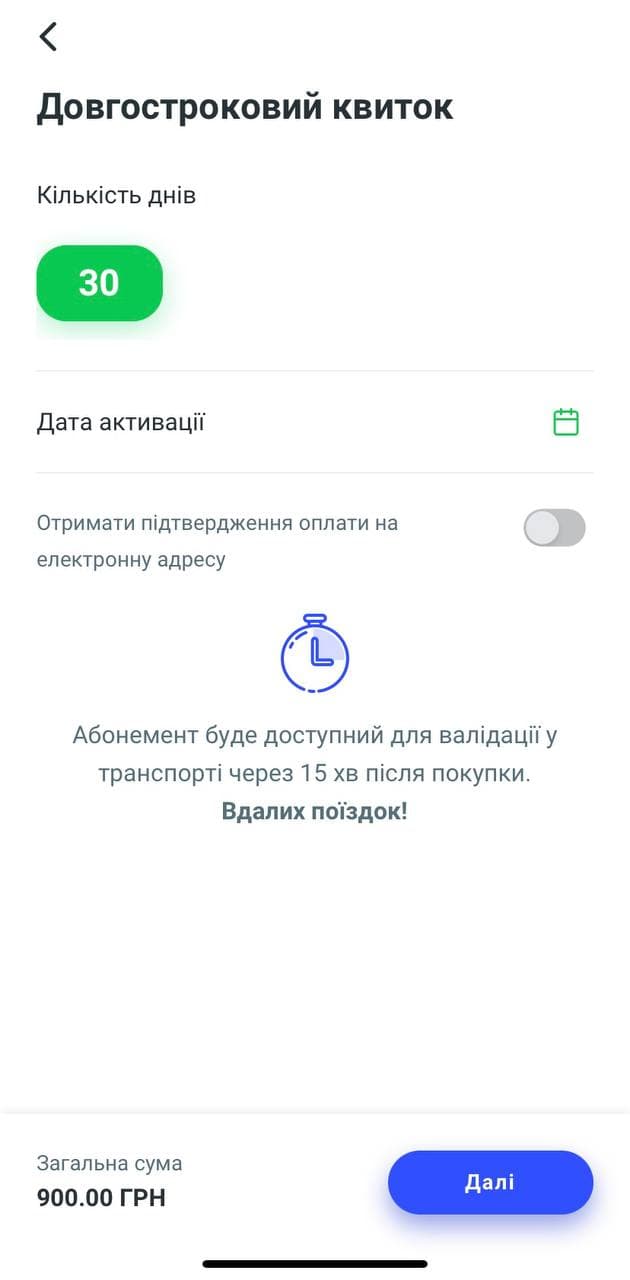 - Оберіть дату активації (з якої почне діяти проїзний).