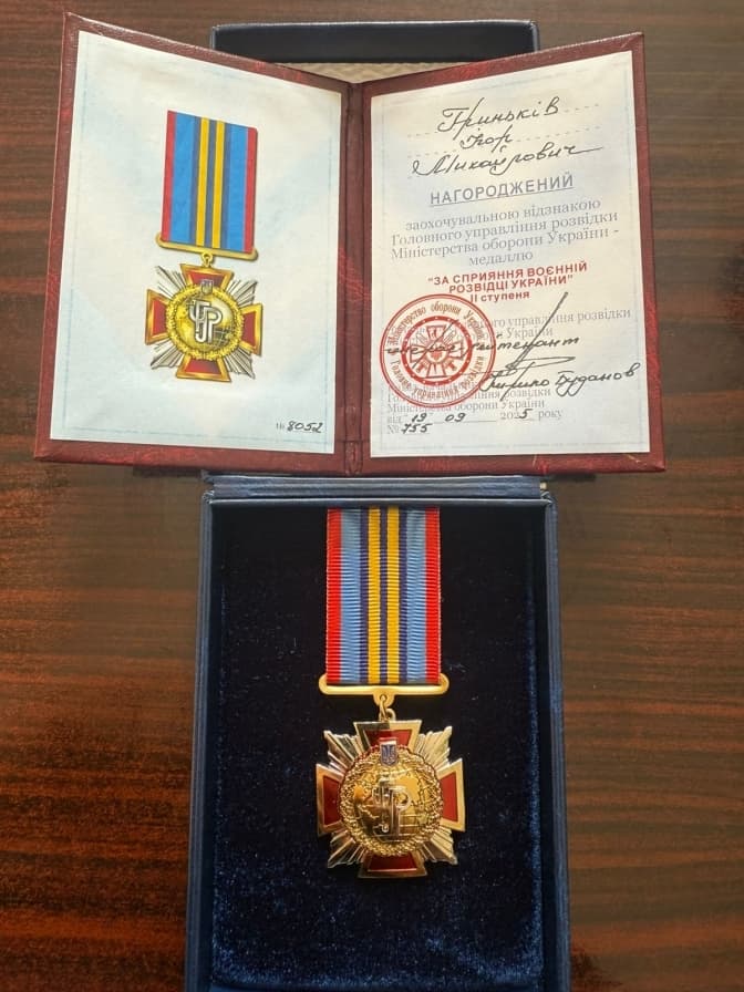 «Ця відзнака – медаль “За сприяння воєнній розвідці України” ІІ ступеня, підписана начальником ГУР МОУ Кирилом Будановим, – це висока оцінка нашої спільної праці. Вона належить усім, хто разом зі мною працює для допомоги нашим воїнам та зміцнення обороноздатності держави», – зазначив Ігор Гриньків.