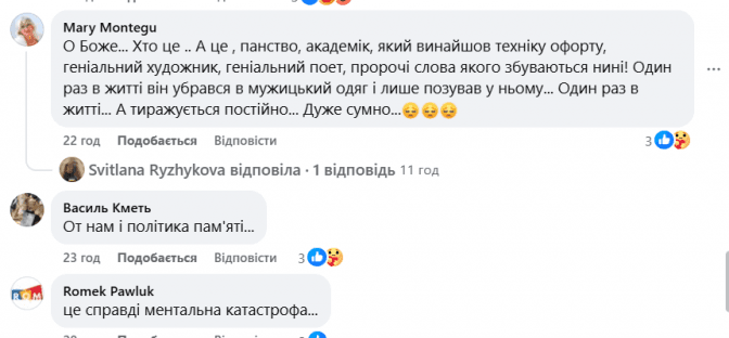 «Може автори не знали, що Шевченко помер у 47? Може ніколи не чули тих рядків Драча: "Скиньте з Шевченка шапку… Йому було перед смертю всього лише сорок сім», — написала Герич.