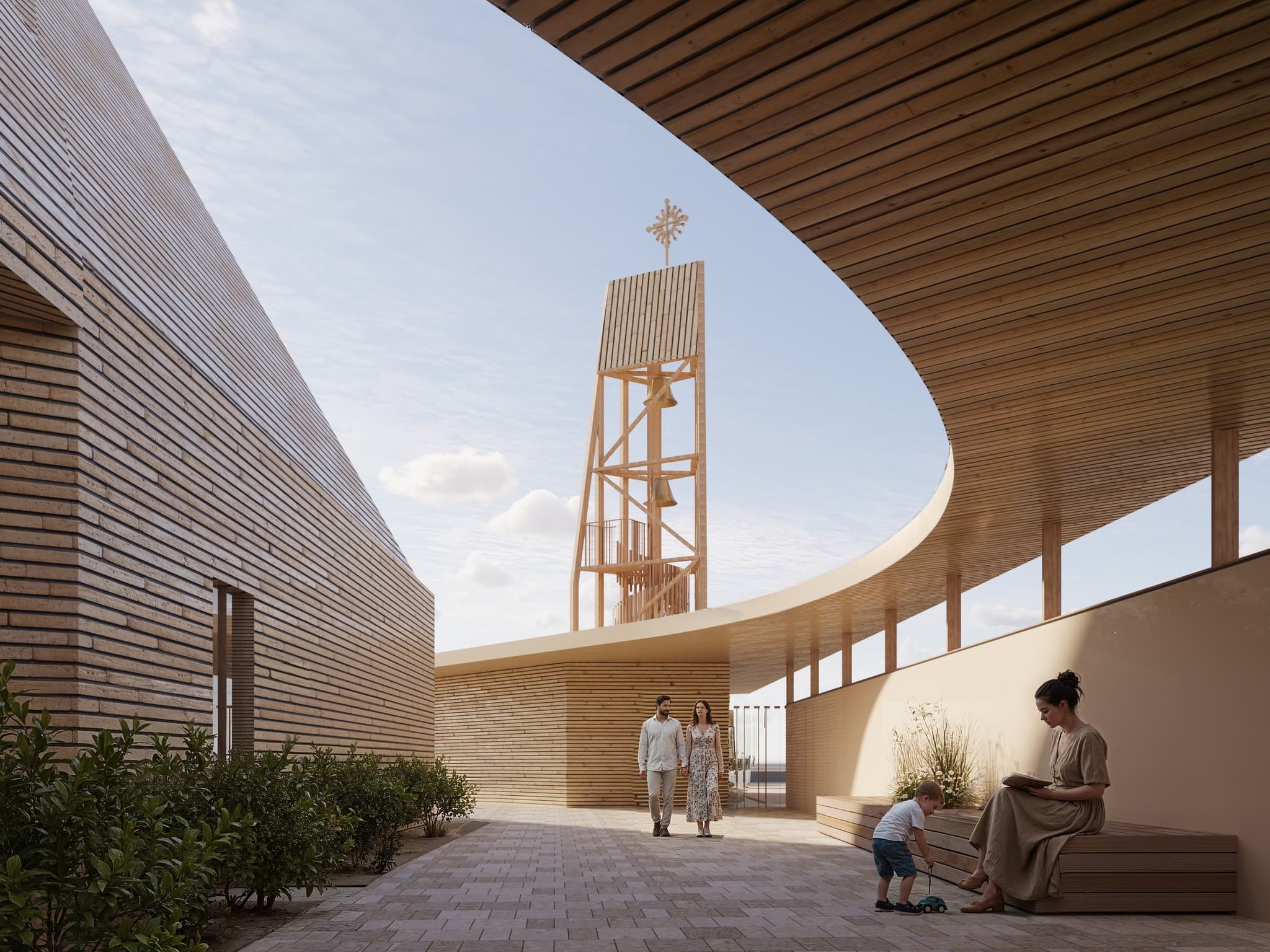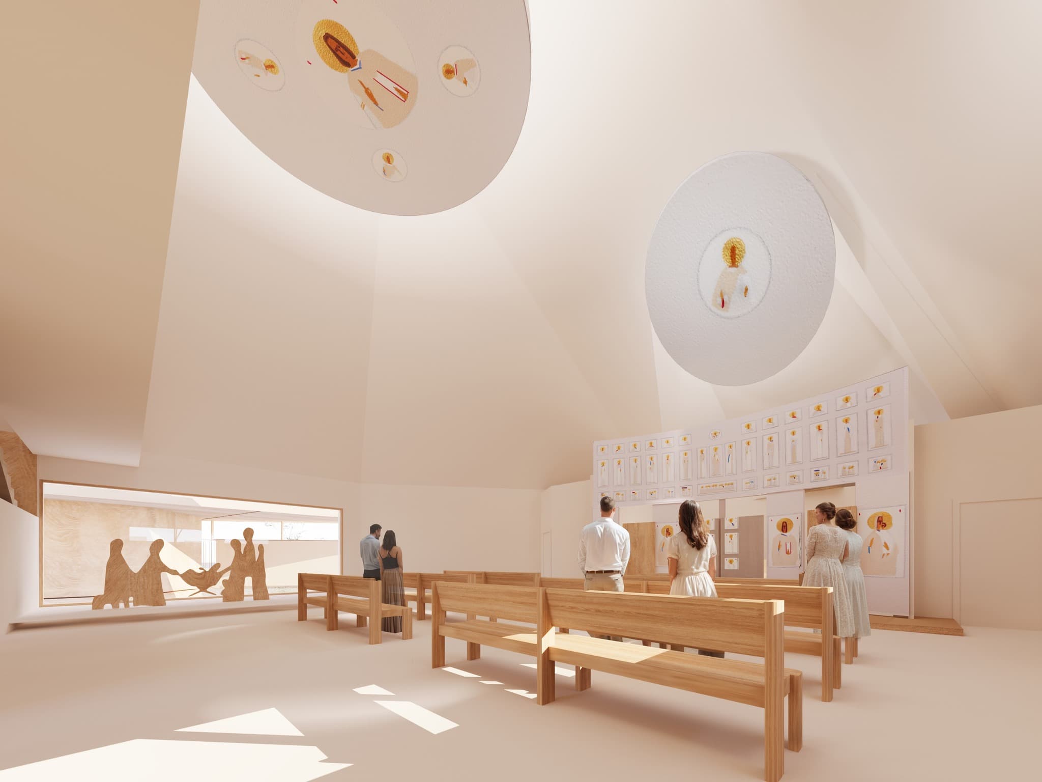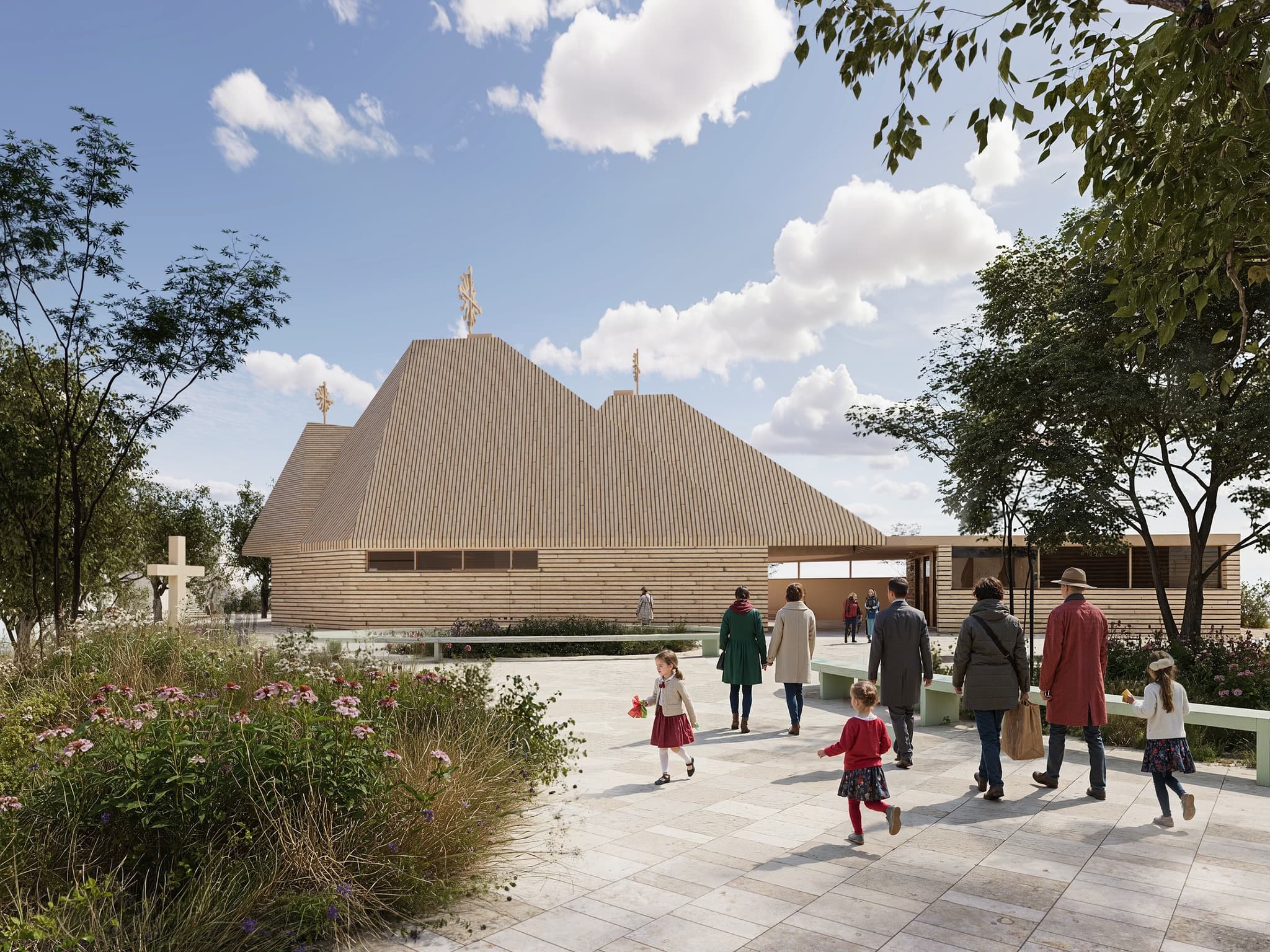 Архітектори побудували концепцію на образі Яскині — місця народження Христа. У проєкті поєднано риси української дерев’яної сакральної архітектури з сучасними конструкціями та екологічними рішеннями. Храм орієнтований за канонічними принципами, матиме трапезну з укриттям, окрему дзвіницю, навчальний клас і подвір’я для громади.