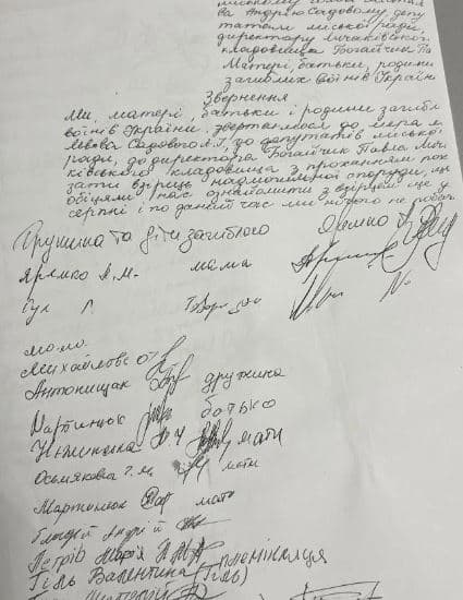 Родини Героїв ініціювали збір підписів з вимогою оприлюднити проєкт меморіалу (якщо він є), представити варіанти памʼятників на могилах (незрозуміло, чому вони мають відрізнятися від уже встановлених), і врешті розпочати роботи (пройшло 3 роки 8 місяців з часу першого поховання)», – йдеться у дописі.