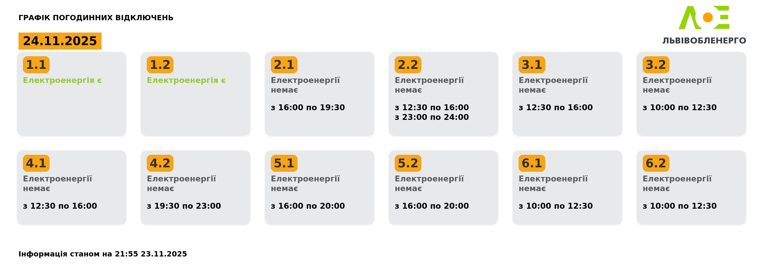 на сайті «Львівобленерго» у розділі «Чому немає світла»: https://poweron.loe.lviv.ua/