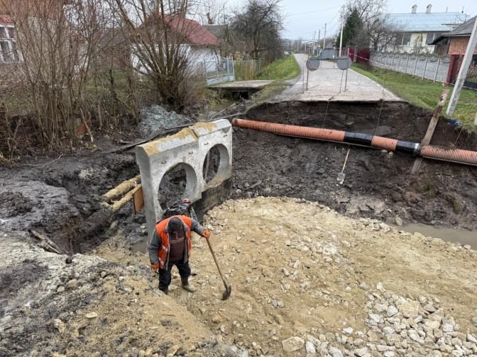 Підрядна організація вже завершила підготовчі роботи та демонтувала старі конструкції. Наразі фахівці влаштовують основу під нові труби.