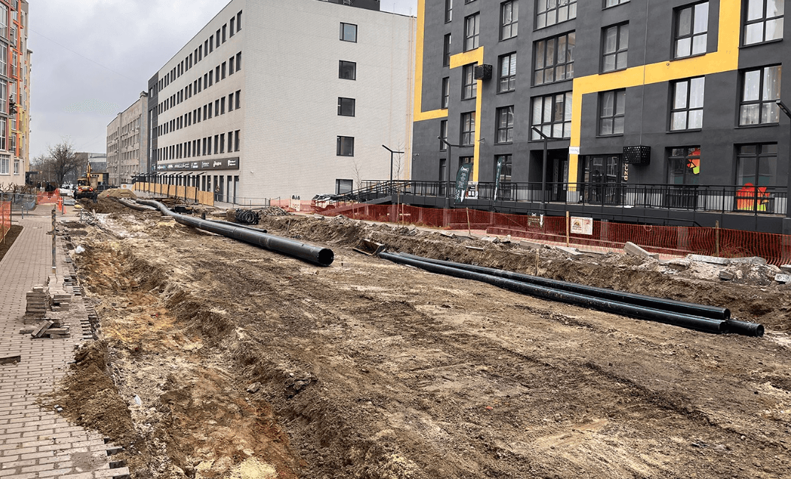Наразі там влаштували конструктив дорожнього полотна на відрізку орієнтовно 140 м, розпочали роботи із заміни водопроводу – зварювання труб діаметром 500 мм та влаштування траншеї під водопровід.