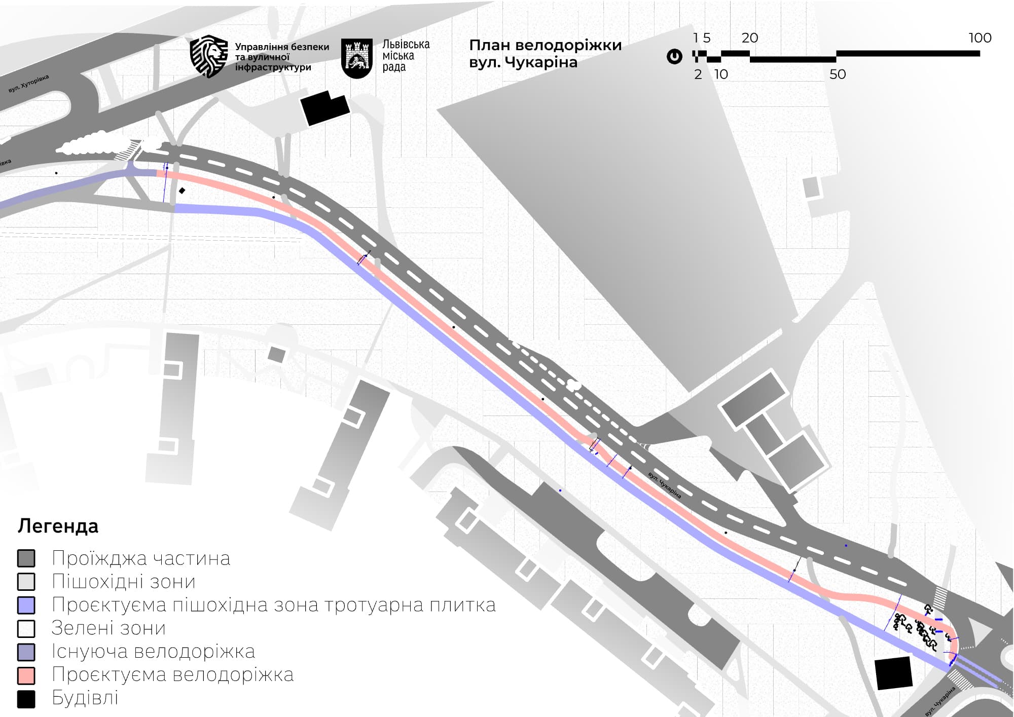 На вул. Чукаріна, на ділянці від вул. Хуторівка до ТЦ «Шувар», облаштовують двосторонню велодоріжку, загальною протяжністю 700 м (в обидва боки). Це дозволить створити безперервний веломаршрут між проспектами Івана Павла ІІ та Червоної Калини. Про це повідомили в пресслужбі ЛМР.