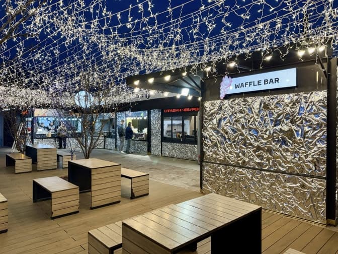 Площа льодового покриття становить 1600 кв. м під відкритим зоряним небом, освітленим 1000 ліхтарями. Навколо – святкова кришталева ялинка, найінстаграмніша карусель міста, казкові фотозони та лаунж-зона з гарячим глінтвейном, чаєм і смаколиками. Працює великий фуд-корт.