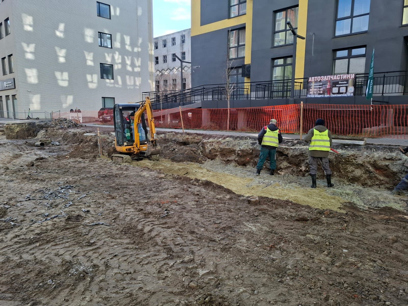 На аварійній ділянці вже виконали демонтаж старого покриття, залишків колії, облаштували нові інженерні мережі, дощові колодязі, водопровід і футляри для освітлення. Також підсилили основу під дорожнє покриття піском і щебенем та уклали георешітку для укріплення дороги.