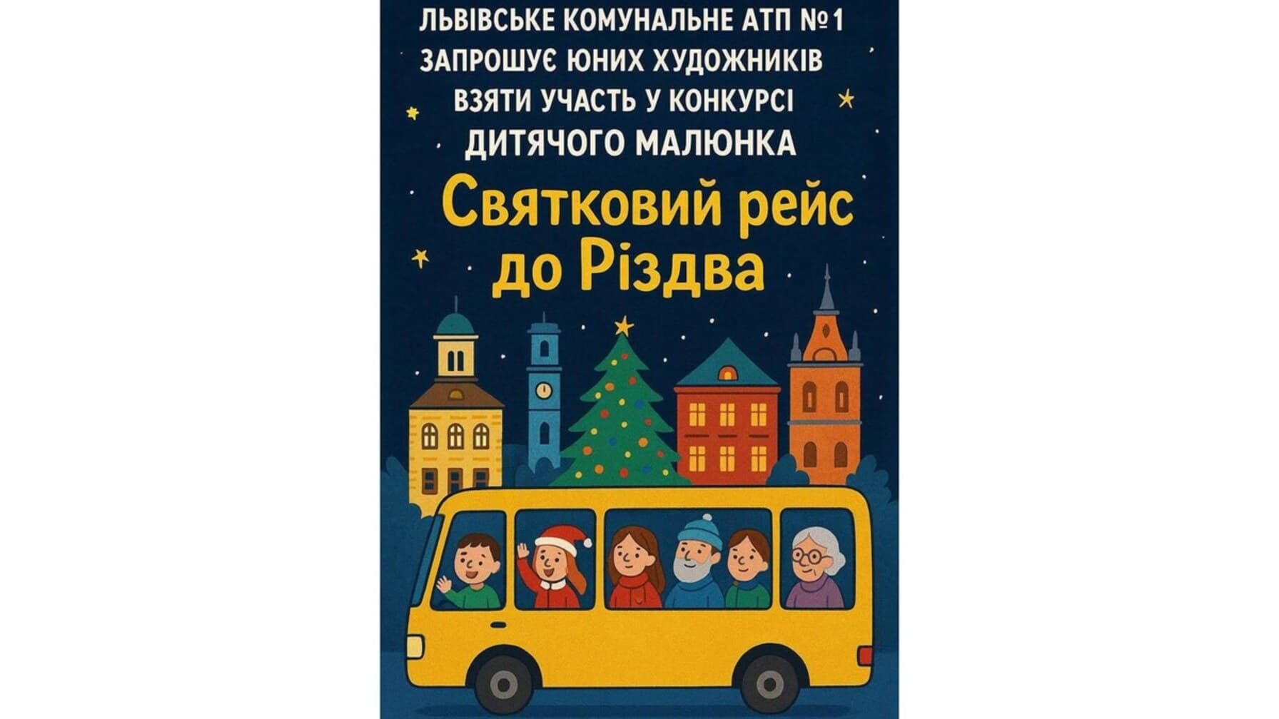 Львівське комунальне АТП № 1 закликає дітей зобразити, як міський автобус допомагає львів’янам діставатися до святкових локацій, родинних зустрічей та тематичних подій. Також учасників просять передати, як виглядає засніжений та освітлений різдвяними вогнями Львів з вікна міського автобуса.