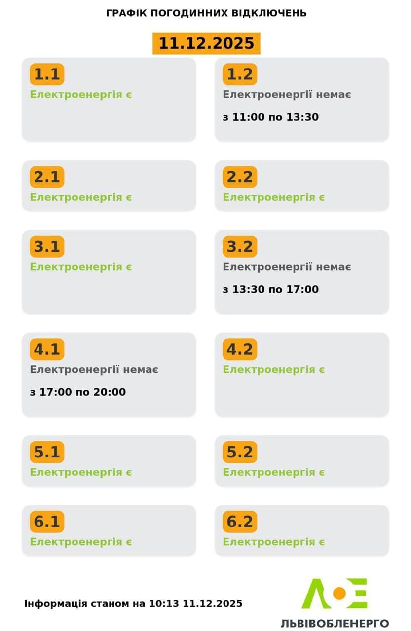 У Львові оновили графіки відключень світла на четвер, 11 грудня. Про це повідомили у «Львівобленерго».
