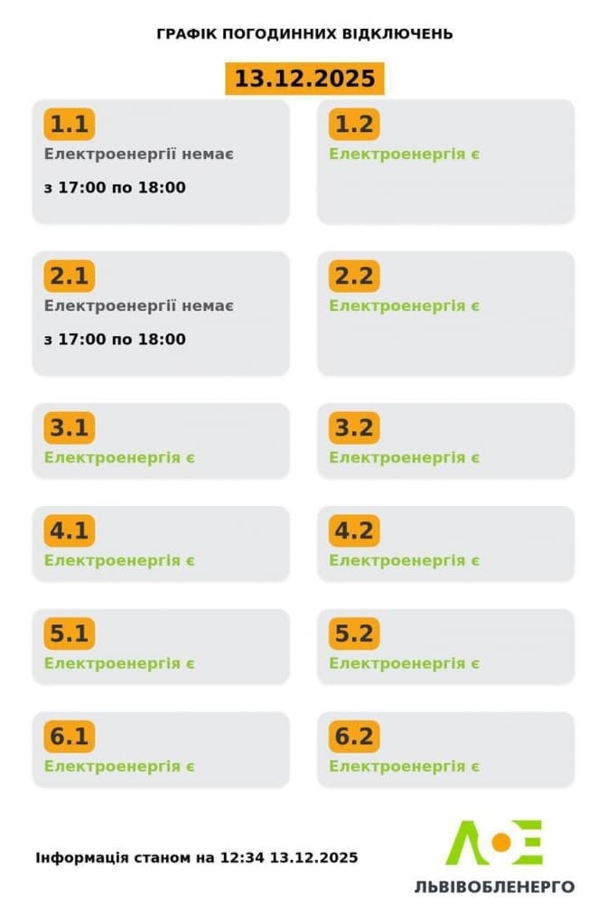 У Львові оновили графіки відключень світла на суботу, 13 грудня. Про це повідомили у «Львівобленерго».