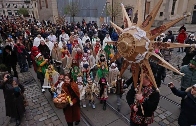 На площі Ангелів у Львові встановили головного різдвяного дідуха. Чотириметрову святкову окрасу колись для міста створила сім’я Коцюків, а щороку її оновлюють майстри Шевченківського гаю.