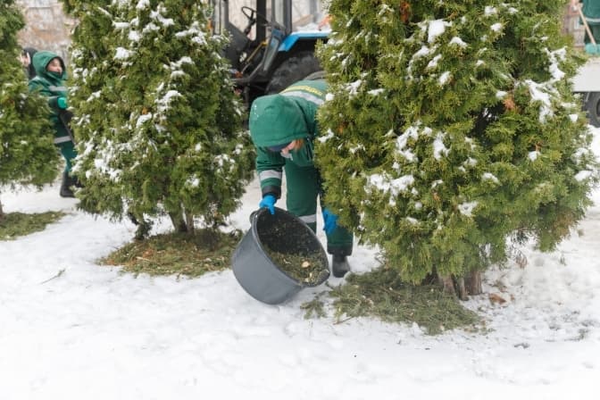 Директор департаменту Павло Іванов повідомив, що станом на ранок 7 січня у столиці вже зібрали понад 650 новорічних дерев. Зібрані ялинки подрібнюють на щепу, яку використовують для мульчування лунок молодих вічнозелених рослин. Такий спосіб утилізації допомагає захищати насадження від морозів узимку та зберігати вологу в ґрунті влітку.