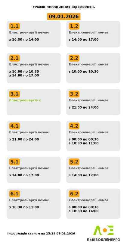 У Львові та області 9 січня вкотре оновили графіки відключень світла. Про це повідомили у «Львівобленерго».