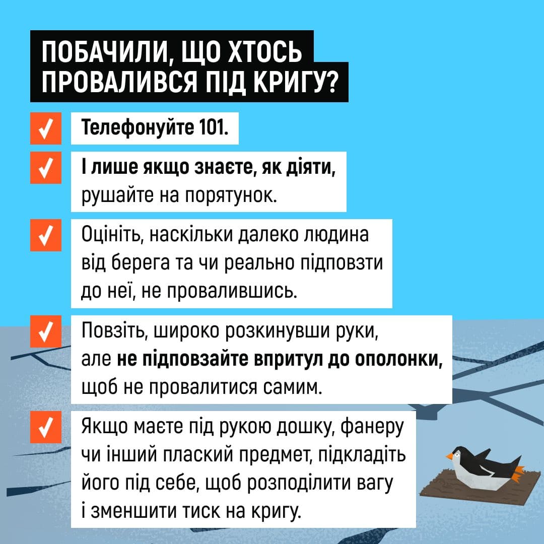 «І крига, і життя не терплять ризиків. Краще оминути небезпеку, ніж опинитися у крижаній воді», — наголосили у ДСНС.