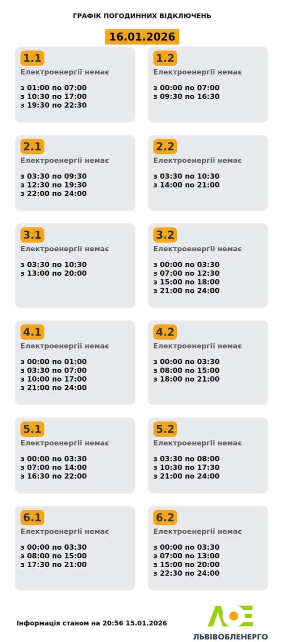 У Львові опублікували графіки відключень світла на п'ятницю, 16 січня. Про це повідомили у Львівобленерго.