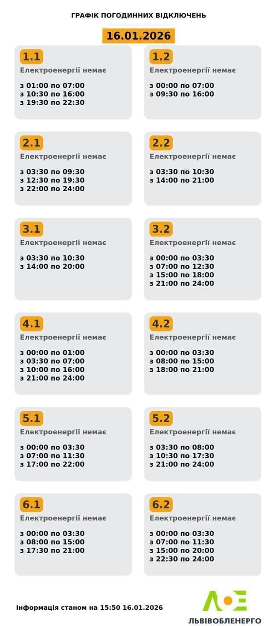 У Львові оновили графіки відключень світла на п'ятницю, 16 січня. Про це повідомили у Львівобленерго.