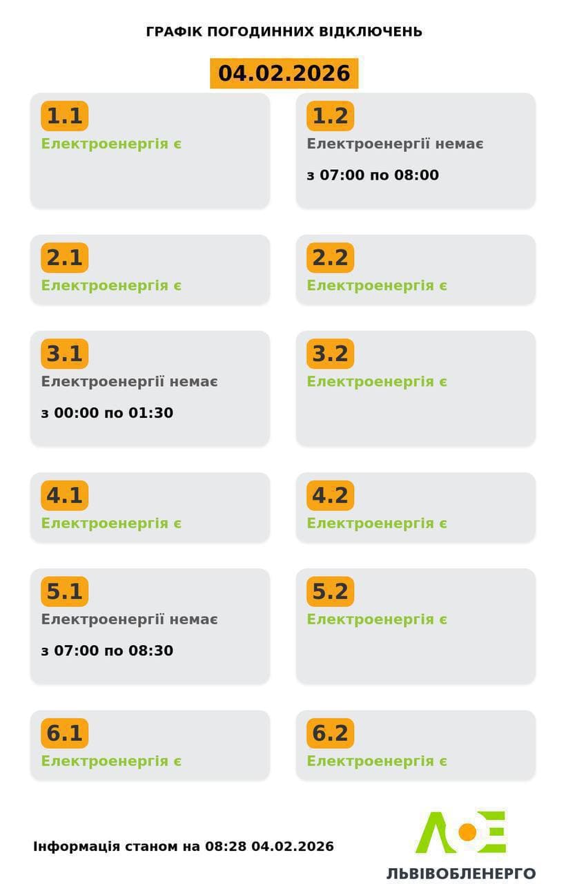 Львівобленерго оновило графіки відключень світла на 4 лютого.