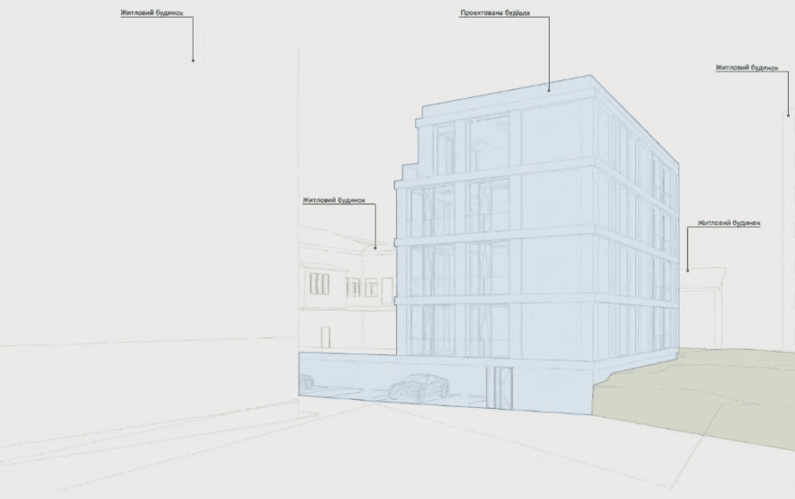 За словами архітекторів, при формуванні концепції врахували сусідні існуючі забудови: семиповерховий будинок поруч, шестиповерхові споруди зі східного боку, а також дві двоповерхові будівлі кінця 19 – поч 20 століття. Планувальне рішення передбачає приблокування нового об’єкта до фаєрмуру двоповерхового історичного будинку.