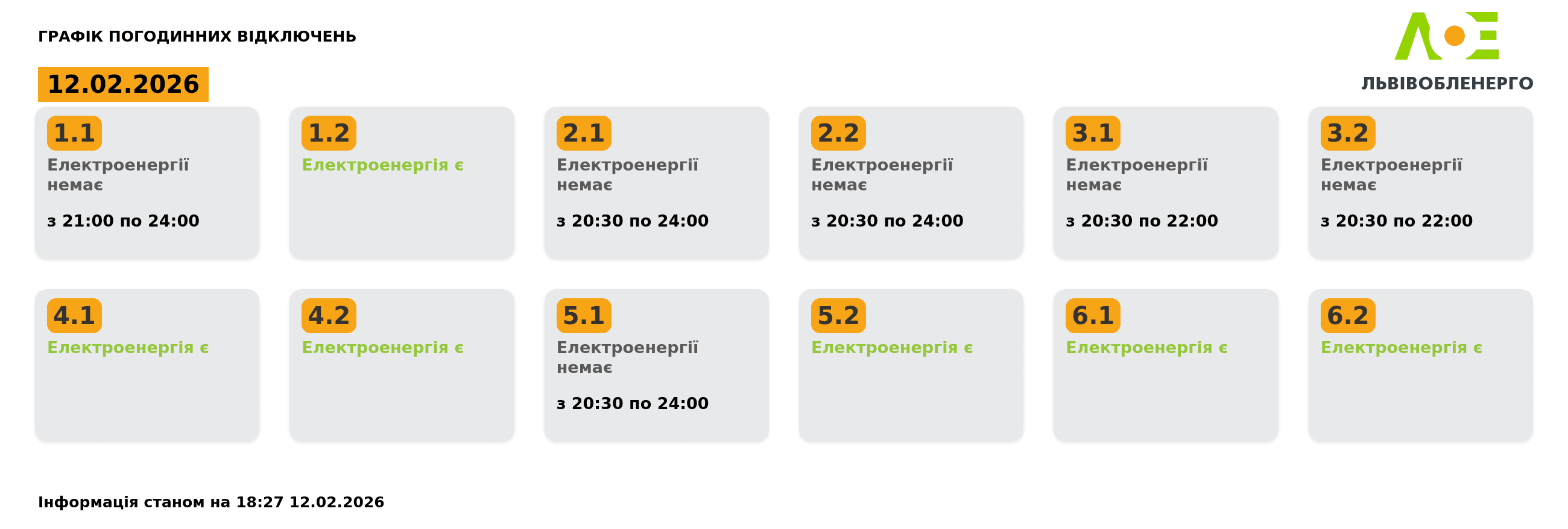 Увечері 12 лютого у Львові оновили графіки відключень світла. Про це повідомили у Львівобленерго.