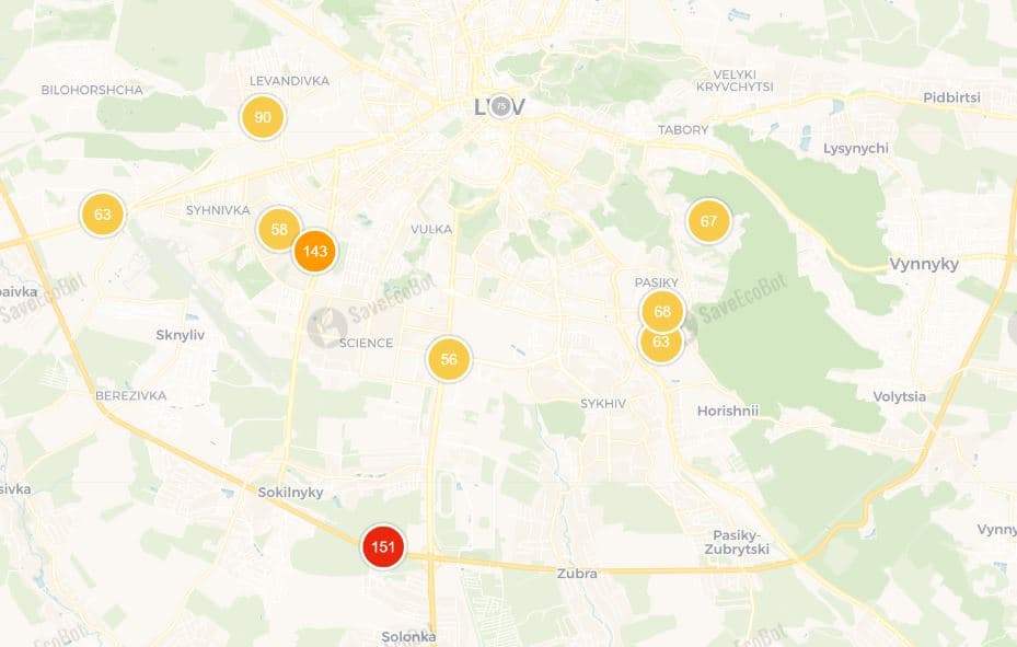 До слова, щоб перевірити рівень забруднення в якомусь районі Львова, потрібно перейти за і подивитися, який колір позначок: якщо вони зелені, то повітря безпечне, а що більше наближується до червоного кольору, то якість повітря погіршується. До 50 АРІ повітря вважається абсолютно чистим, до 100 АРІ – цілком прийнятним, від 150 АРІ – поганим.