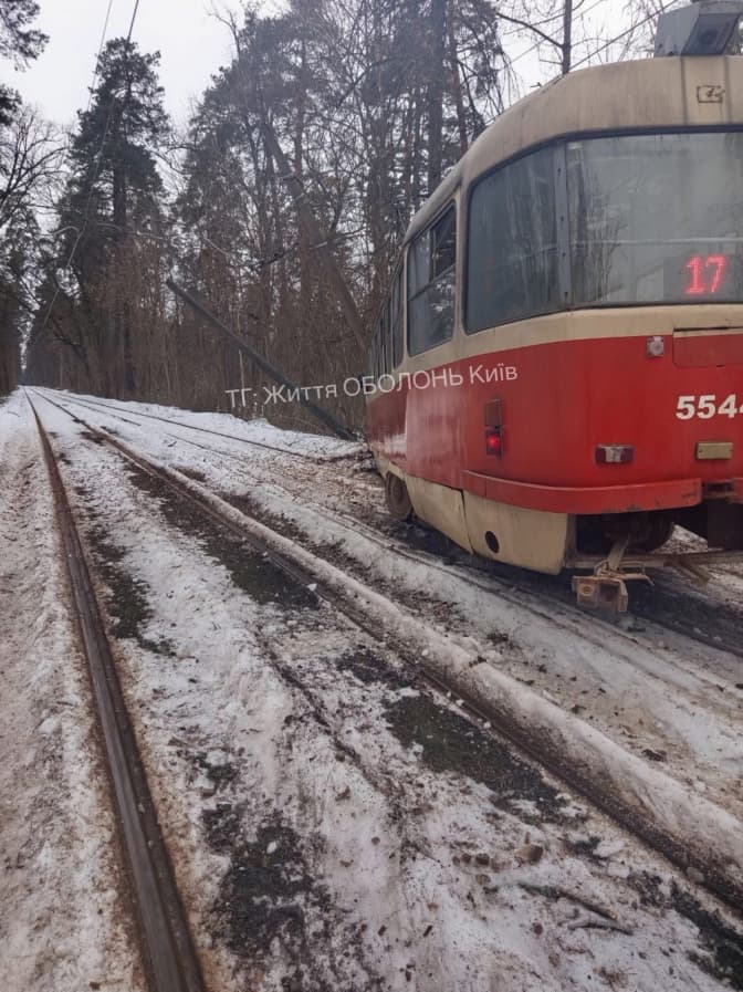 В Києві на лісовій трасі в напрямку Пущі-Водиці зійшов з рейок трамвай №17. Інцидент трапився у перший день після відновлення руху електротранспорту на правому березі столиці. Про аварію повідомили місцеві Telegram-канали.