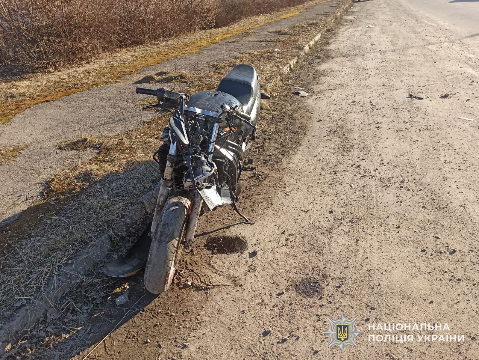 «Внаслідок ДТП неповнолітній водій мотоцикла «Suzuki» госпіталізований в лікарню «Охматдит» з діагнозом: відкритий перелом лівого передпліччя.